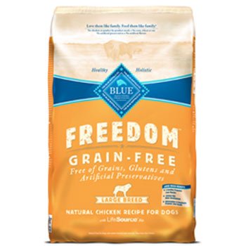 Blue Buffalo Small Breed Freedom Grain Free Chicken Recipe Adult Dog Food Some dogs just don't do well with grain-based foods. That's why Blue Buffalo created Blue Freedom dry food for small breed dogs. Blue Freedom contains no grains, so it has no glutens. Glutens are known to trigger allergic reactions in some dogs. Blue Buffalo Small Breed Freedom Grain Free Chicken Recipe Adult Dog Food is made with the finest natural ingredients -- ingredients chosen with great care by our animal nutritionists, providing your dog with the right balance of high-quality protein and complex carbohydrates. Deboned chicken is the first ingredient, providing a high-quality protein source. Whole carrots, sweet potatoes and peas offer vitamins and minerals, and blueberries and cranberries provide antioxidants. The enhanced supplementation of exclusive LifeSource Bits offers a precise blend of vitamins, minerals and antioxidants selected by holistic veterinarians and animal nutritionists. These include ingredients that support immune system health, life stage requirements and healthy oxidative balance. And LifeSource Bits are cold-formed to help retain the potency of their nutrients.Read more Blue Buffalo Large Breed Freedom Grain Free Chicken Recipe Dry Dog Food, 24-Pound