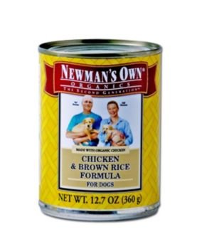 Newmans Own Organic Can Dog Food Newman's Own Organics Adult Chicken and Brown Rice Formula is made of organic ingredients which ensures essential nutrients in addition to conserving our natural ecosystems. Organic foods are produced without the use of chemical pesticides, are minimally processed and are not irradiated nor contain any chemical additives or preservatives. Features . Healthy organic food Item Specifications: Size 24/5.5 Oz Cans per Case 12/12.7 Oz Cans per Case Style Chicken/Rice, Chicken, Turkey/Rice, Turkey/Chicken Ingredients Organic Chicken, Sufficient Water for Processing, Ocean Whitefish, Brown Rice, Carrots, Organic Turkey, Oat Bran, Flaxseed, Tricalcium Phosphate, Dried Kelp, Guar Gum, Carrageenan, Potassium Chloride, Sea Salt, Minerals (Iron Amino Acid Chelate, Zinc Amino Acid Chelate, Cobalt Amino Acid Chelate, Copper Amino Acid Chelate, Manganese Amino Acid Chelate, Sodium Selenite, Potassium Iodide), Choline Chloride, Vitamins (Vitamin E, A, D3, B12, D3 Supplements, Thiamin Mononitrate, Biotin, Riboflavin Supplement) Guaranteed Analysis Crude Protein min8.00% Crude Fat min6.00% Crude Fiber max1.00%