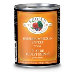 Fromm Four-Star Nutritionals Shredded Chicken Entree Canned Dog Food is shredded chicken breast meat simmered in chicken broth with dicedcarrots, peas, and potatoes. Offers superior quality and a taste your dog will love. Fromm Four-Star Nutritionals Shredded Chicken Entree Canned Dog Food features 100% human grade meats and vegetable slow simmered in their own natural broth and carefully prepared to people-food standards.Read more Fromm Four-Star Canned Dog Food - Shredded Chicken Entree (12/13oz cans)