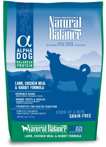 Natural Balance Alpha Grain-Free Lamb, Chicken Meal, and Rabbit Formula for Dogs is a grain-free blend of multiple, high quality proteins, fruits and vegetables. Natural Balance has balanced your dog's nutritional needs with a formula that goes back to the grain-free benefits of the wild. A unique combination of proteins combined with the novel source of garbanzo beans to provide a balanced diet for your dog's overall well-being. Grain-free carbohydrate sources, like sweet potatoes, provide the energy your dog needs to thrive in their natural form. Prebiotics feed the beneficial bacteria that reside in a healthy digestive tract so that your dog can maintain optimal digestion. In addition to the legume garbanzo beans, an excellent source of fiber and protein, Natural Balance has also added blueberries, zucchinis and apples to help your dog achieve a harmonious balance that is both healthy and delicious. Complete and balanced for all breeds, from puppies to adults. Size: 5-Pound.