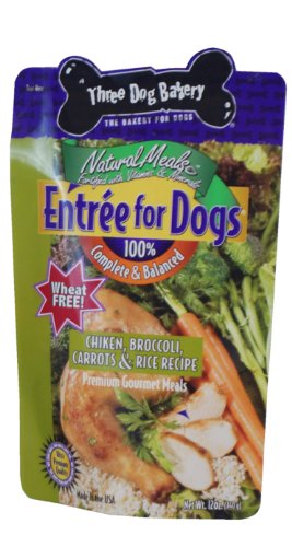 Find for item features and simillar products of Three Dog Bakery Gracie's Gourmet Entrée Food for Dogs, Chicken/Broccoli/Carrots/Rice, 12-Ounce. Help in your choosing.